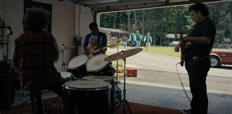 Eddie has cool style: denim, leather jacket, patches, hi-top Reeboks.